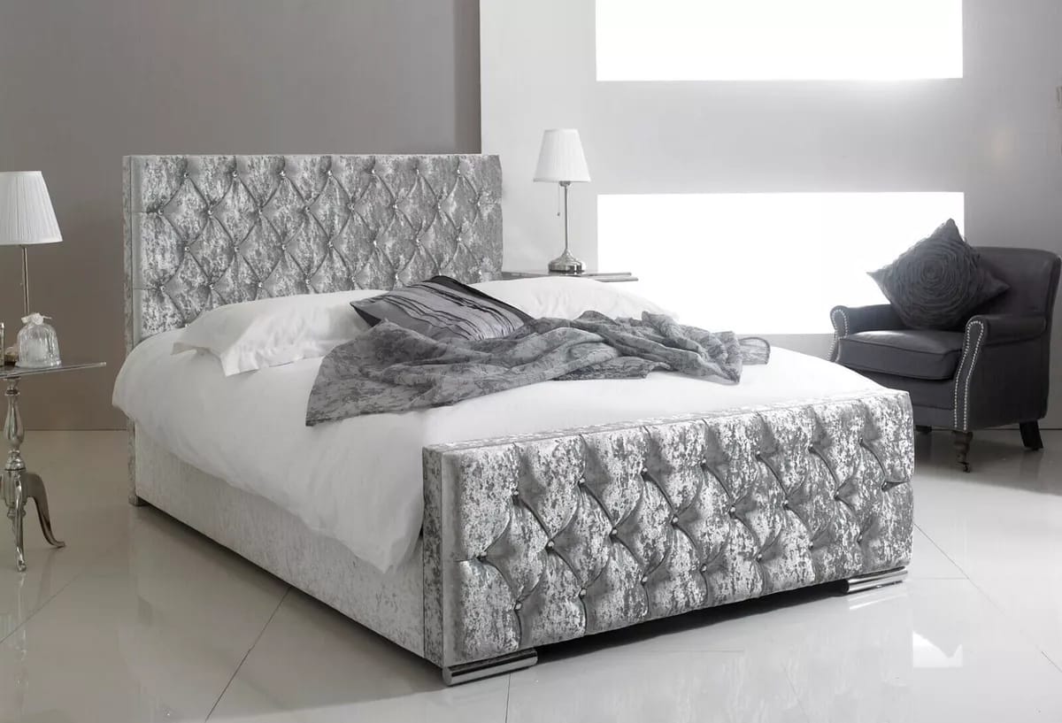Elevate your bedroom with the stunning Crystal Diamante Bed, where elegance meets comfort. Featuring a plush upholstered frame adorned with sparkling diamante detailing, this bed adds a glamorous touch to any space. Crafted with premium materials for durability and designed to offer superior support, the Crystal Diamante Bed transforms your sleeping area into a luxurious retreat.