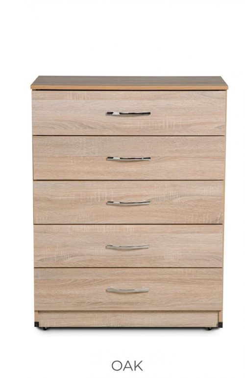 Elevate your bedroom storage with this stylish 5 Drawer Chest of Drawers. Featuring spacious compartments, sturdy build, and a modern finish—perfect for organizing clothes, linens, and essentials.