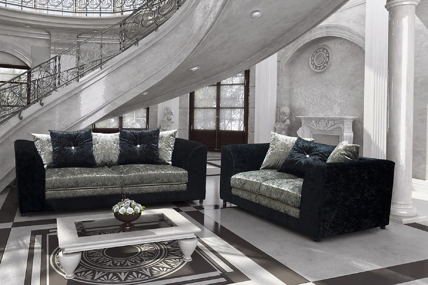 Elevate your living room with the Bella Crushed Velvet 3+2 Seater Sofas, featuring luxurious crushed velvet upholstery and spacious seating. This elegant sofa set blends comfort with sophistication, perfect for creating a cozy yet stylish environment.